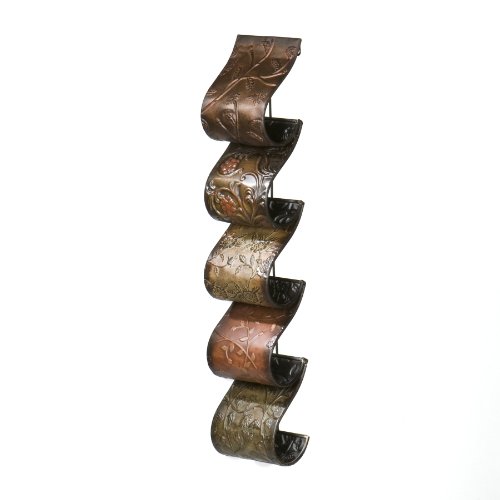 Dress up your home and your wine collection at the same time! This exquisite piece of metal art resembles a swatch pallet with its variety of patterns and hand painted colors. Each layer delicately arches to create 5 perfect wine bottle holders. Whether you place it in your kitchen or dining room, you are sure to be impressed by the convenience and compliments of friends.