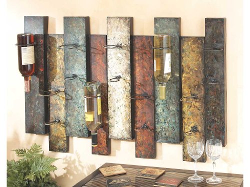 This wall mounted wine holder by Midwest CBK features a nice offset panel design. The wine bottle holder folding rings and multicolor overlay finish.
